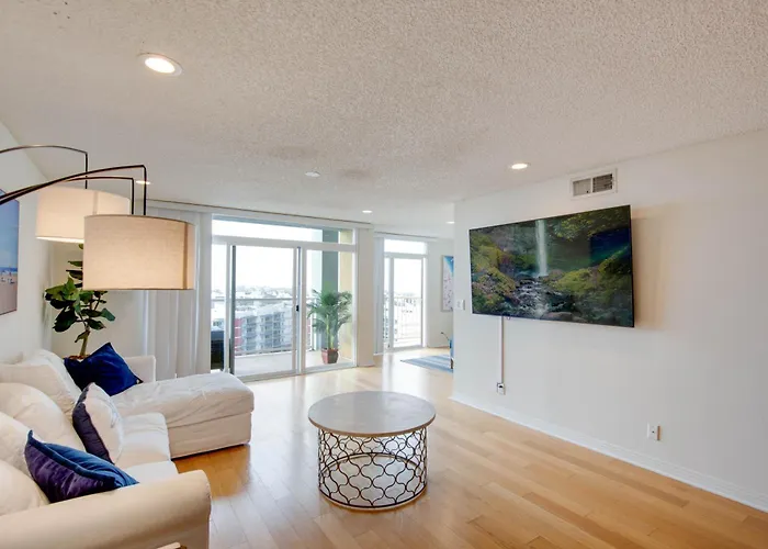 The apartment is within a 4-km distance of the private non - profit aerospace Museum of Flying, which is an excellent place to improve cultural awareness. Around a 15-minute ride from Nautical 2 Bedroom With Beautiful Ocean Views apartment leads to the Santa Monica Civic Auditorium.